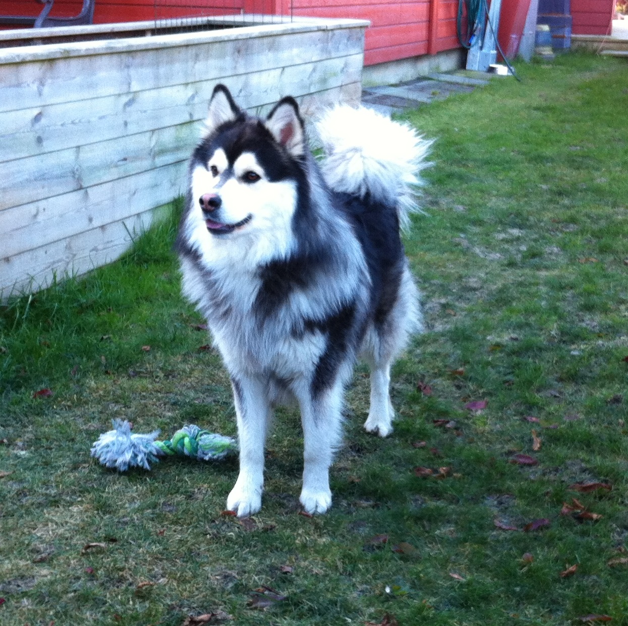 | Stolt mor med sine fem små. Nå har de vokst seg store og fine. De er fem sosiale, trygge og høyt elskede hunder i sine familier. Kvitsymras Armi "Laika" |